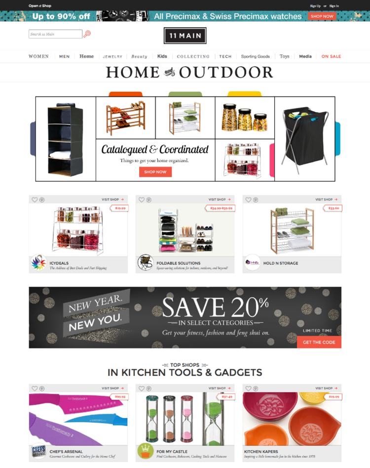 While working for for 11 Main, I was lead designer for promotional banners on all of the Tech, Home, and Fashion category pages. They got refreshed biweekly and seasonally.